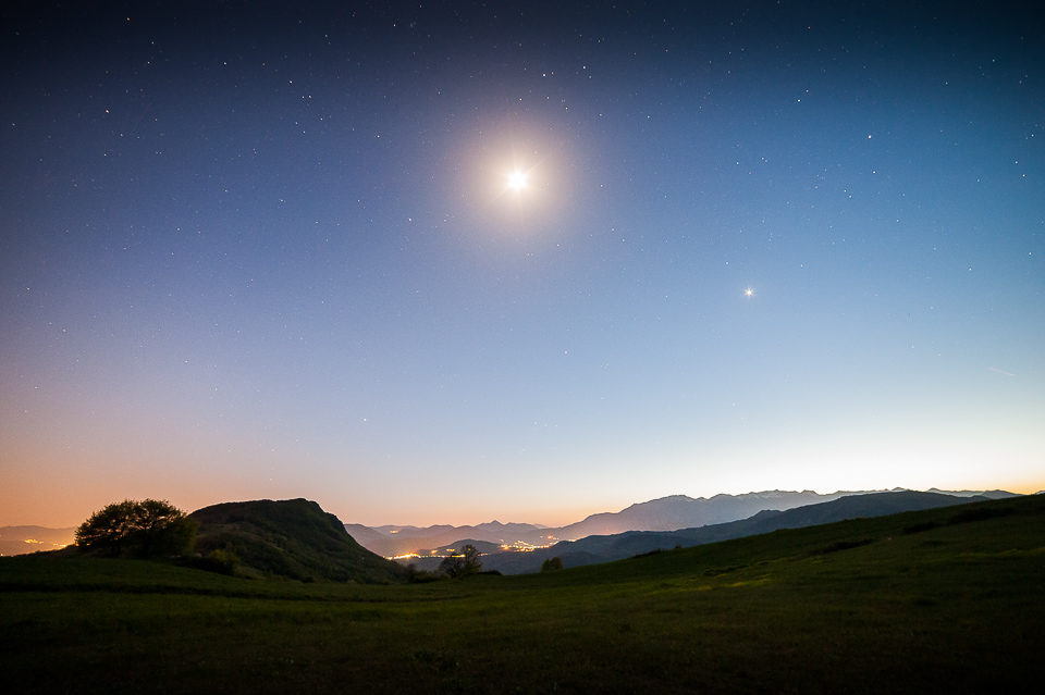 manca un pp protagonista o "attore rilevante",un albero una pietra un uomo,avrei anche abbassato ulteriormente il punto di ripresa per meglio riempire lo spazio tra il crinale della collina e l'inizio delle stelle.