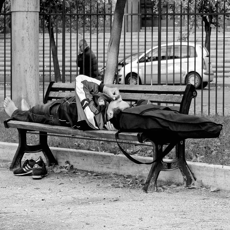 questa è un'ottima street, non è stata osservata bene dagli utenti del forum, il tizio sdraiato che si è tolto le scarpe ed il signore dietro l'inferriata con la mano al naso come per non sentir il puzzo di piedi.