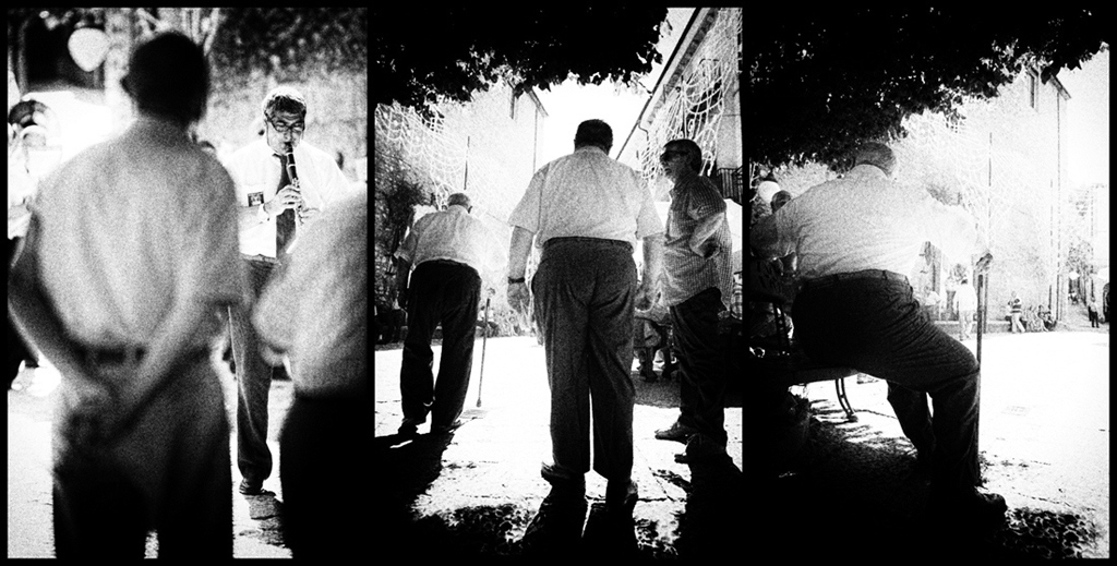 Vita di paese: la banda musicale, una passeggiata accaldata e il relax all'ombra... funzionale la postproduzione flou nelle alte luci che mi dà il senso dell'afa, e le ombre nette del sole estivo.