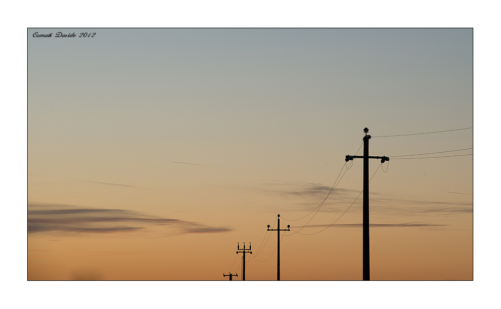 Pali e fili verso il tramonto o l'alba: un classico che direi ben riuscito per le belle tonalità di colore. Bello anche il titolo Smile .