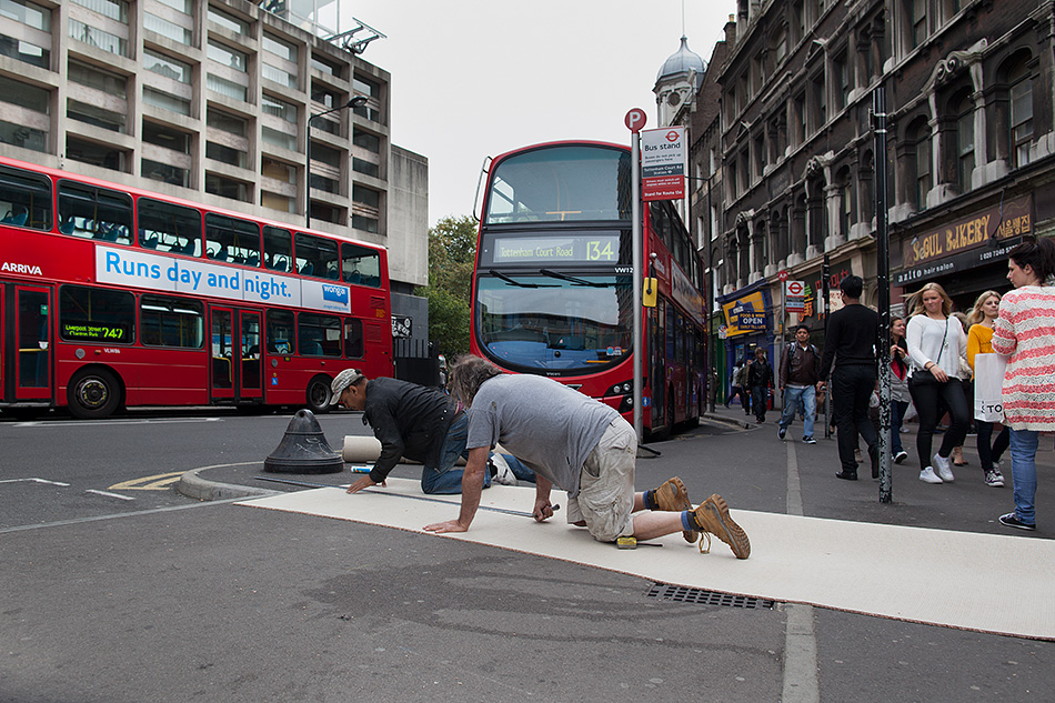 c'è una certa associazione da correlare ai velocisti pronti a scattare ai blocchi di partenza...ma mi attira più la curiosità delle persone..che come dice sisto è stata ben immortalata...ed unita alla strana posizione dei lavoratori ne fanno una vera street....