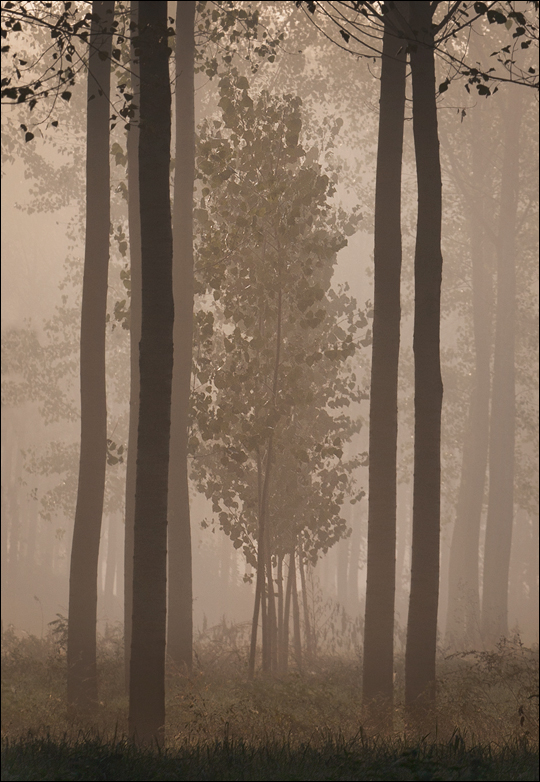Bella la nebbia tinta dalla luce mattutina. Per me uno scatto intimo da osservare in silenzio.