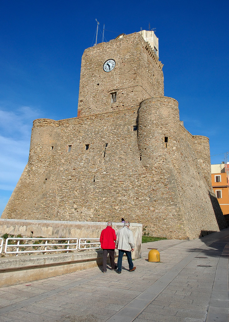 Come si evince dal titolo stesso e dalle scelte di ripresa il protagonista della foto dovrebbe essere il Castello svevo. La coppia di signori che dovrebbero essere invece il motore della street risultano poco comunicativi perché immortalati di spalle, in una traqnuilla passeggiata; anzi, c'è da dire che il rosso del giubbotto di uno dei due si configura all'interno della composizione quasi come un elemento di disturbo perché vincola con il suo colore l'attenzione dello spettatore.