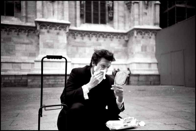 Gran bella foto, bello il gesto, particolare il tizio, bello lo sfondo, atmosfera poetica un pizzico decadente
