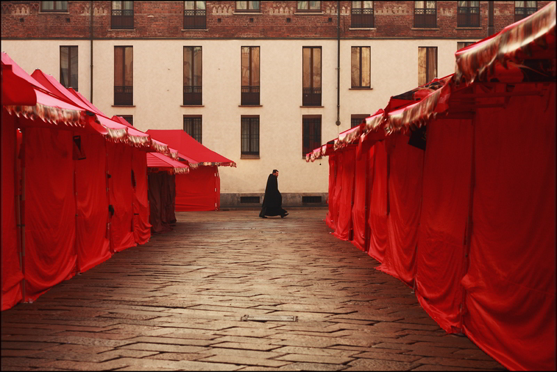 Da come dici non hai avuto molto tempo di pensare altrimenti una cosa possibile era fare due passi a sinistra per avere la massima simmetria degli stand ai lati (..ma forse così facendo avresti avuto delle linee storte da correggere in post sul palazzo per la prospettiva Rolling Eyes ...).