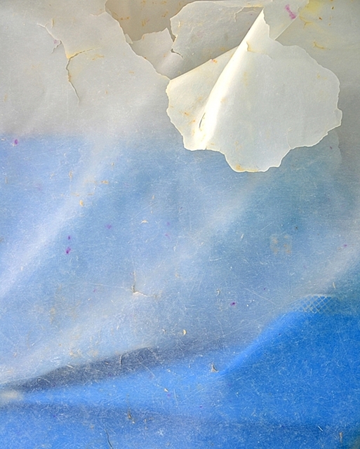 Un lembo di plastica si stacca assumendo le sembianze di un petalo, tende e si piega verso l'azzurro esaltandosi nel bel contrasto. Bellissima!