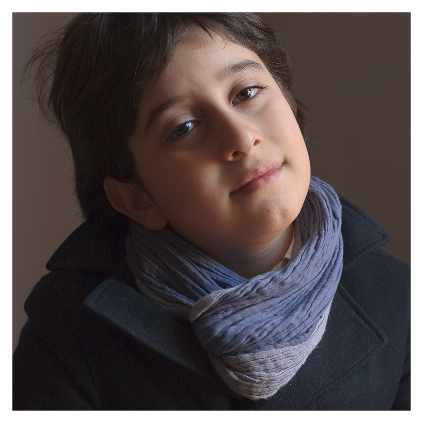 non mi convince ne il taglio ne l'inclinazione della testa, la parte sx della foto ( sopratutto attorno l'orecchio ) è rovinata...o è rumore o è una marcata maschera di contrasto che l'ha rovinata.