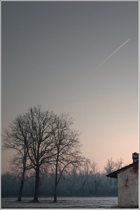 Molto bella nel descrivere quelle impalpabili atmosfere mattutine delle tue parti...una 'famigliola' di tre alberi isolati sembra in attesa dell'inizio del nuovo giorno, dell'Epifania del sole...ritrovo con piacere quel 'tuo' rosa ed anche la scia luminosa che spesso attraversa i tuoi scatti...Buon Anno Giuseppe, di cuore  |