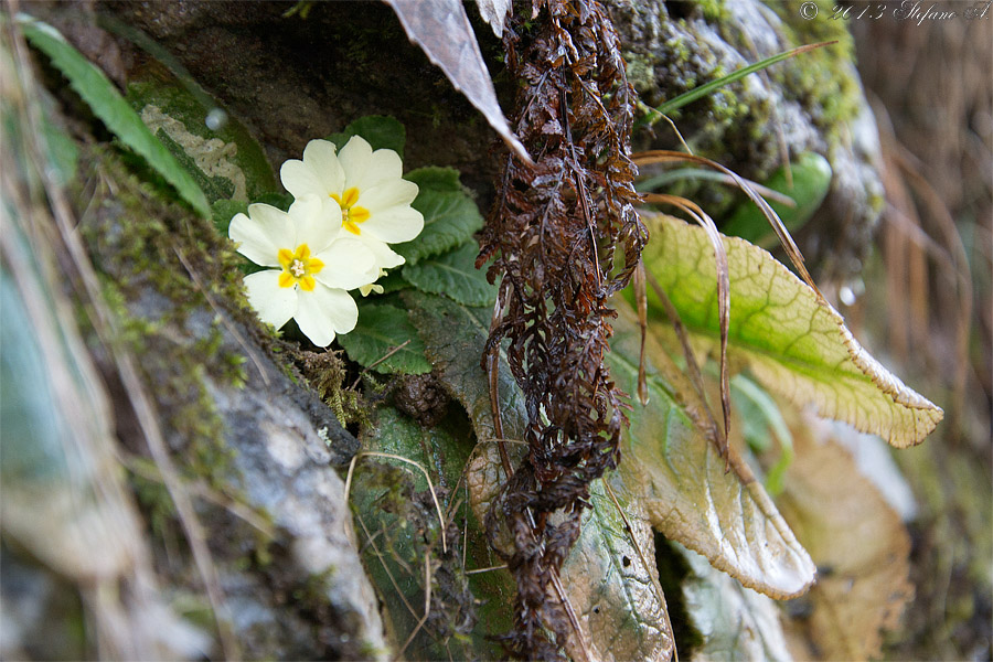 I soggetti (le primule) sono sovraesposte e si confondono con la grande quantità di elementi presenti nell'inquadratura. Va bene "ambientare" ma così è troppo Ok!