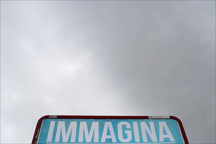 Ma mi piacerebbe andare oltre a tutti gli stereotipi quotidiani legati a quella scritta ed immaginare, ma veramente, cosa possa comparire tra quelle nubi grigiastre....non chiedo un segno divino....sarebbe pretendere troppo....ma solamente un'emozione...