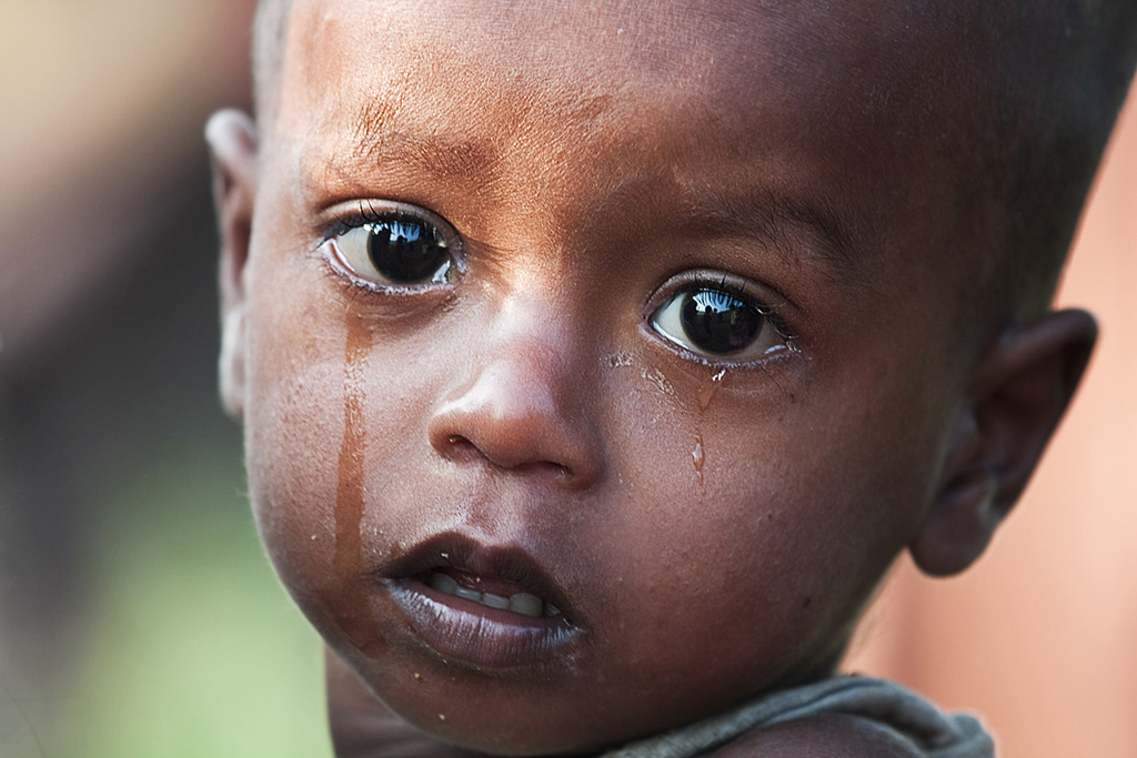 Si, è vero, c'è qualche errore tecnico ma davanti ad uno scatto del genere passa in secondo piano, uno scatto che emana tristezza e compassione per questo bimbo con gli occhi carichi di pianto che guarda il fotografo col viso rigato dalle lacrime, foto che fanno riflettere e porsi qualche domanda.