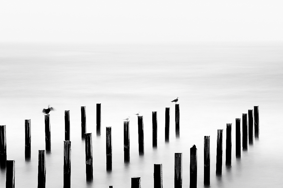 mi piace molto l'effetto che hanno i pali che sembrano uscire dal nulla grazie alla giusta tonalità tra cielo e acqua