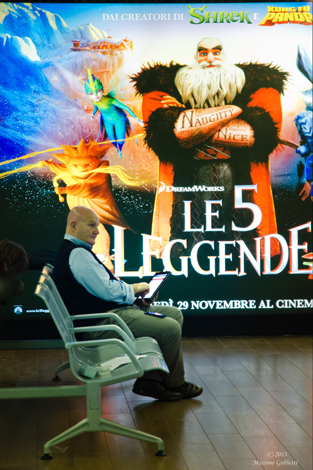 Per chi frequenta il cinema d'animazione il collegamento è abbastanza immediato, ma visivamente il nome verde sul cartellone ha poco peso: bisognerebbe legare altrimenti i nuovi personaggi col sosia seduto. Forse attraverso il titolo "Le 5 leggende", ma mancherebbe il citato Kung-fu panda...