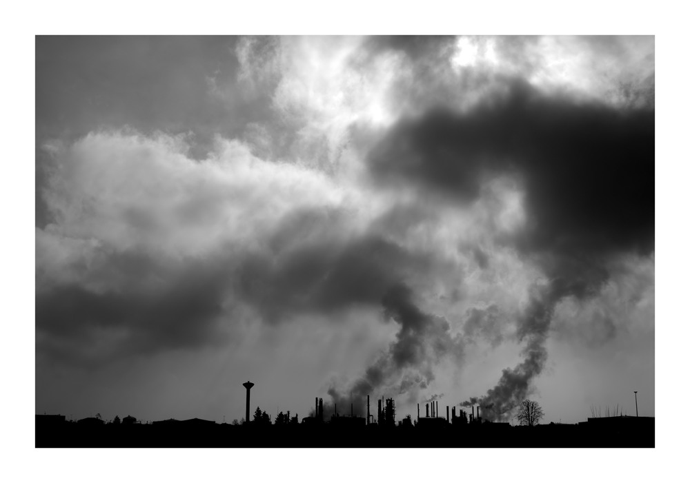 La silhouette delle ciminiere restituisce, almeno a me, un'impressione positiva..la vedo come una fabbrica di nuvole, coronato da un bianconero con tante sfumature..