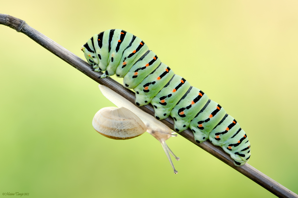 Ciao Max, meglio la seconda...perfetto il bruco, inevitabilmente in movimento la chiocciolina, ma di poco poco ed in primis nemmeno si vede...piacevole.
