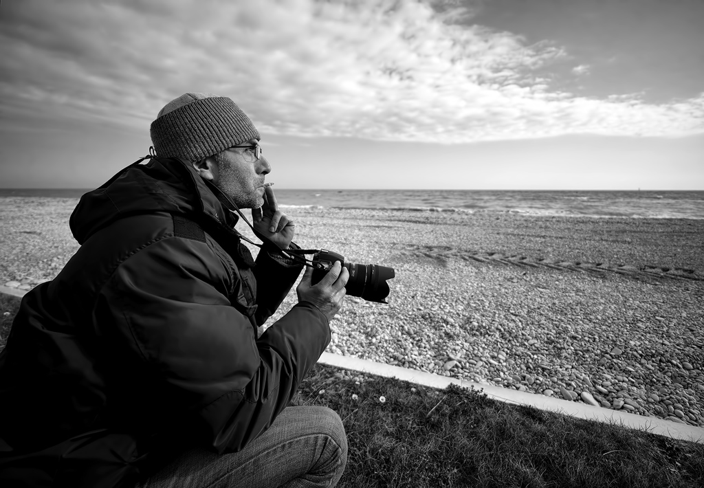 hai ripreso un bell'attimo dove è palpabile la concentrazione di Daniele nell'osservare una scena preclusa alla nostra vista. forse avrei visto meglio la linea dell'orizzonte un po' più in basso perchè li dov'è impalla un po' il gesto della mano di lui mentre aspira l'ultima boccata di sigaretta, ma ovviamente nascendo come scatto rubato non tutte le scelte possono essere ponderate con calma