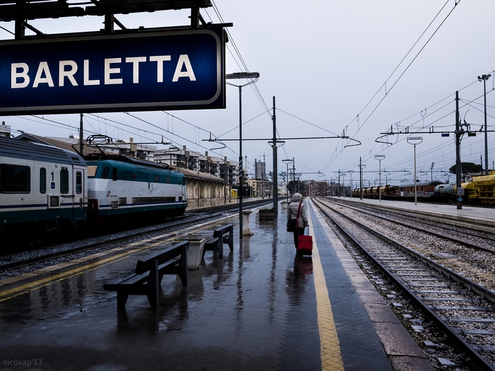 più che altro vorrei qualche lume sulla pp; inizialmente avevo pensato una desaturazione parziale lasciando i colori giallo della linea, blu del cartellone e rosso della valigia ma poi ho desistito insistendo però su una desaturazione generalizzata.. premettendo che i miei monitor non sono chissàche ma non la vedete un po' morbida? l'atmosfera che volevo restituire è un po' questa, manca un filino di contrasto?