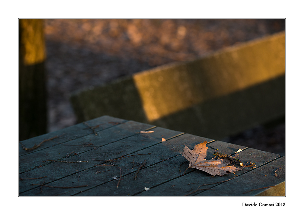 Avrei cercato di porre meglio l'attenzione sulla foglia...se possibile con una ripresa dall'alto...la panchina illuminata nello sfondo sfocato non mi fa impazzire...perdona la schiettezza... Smile