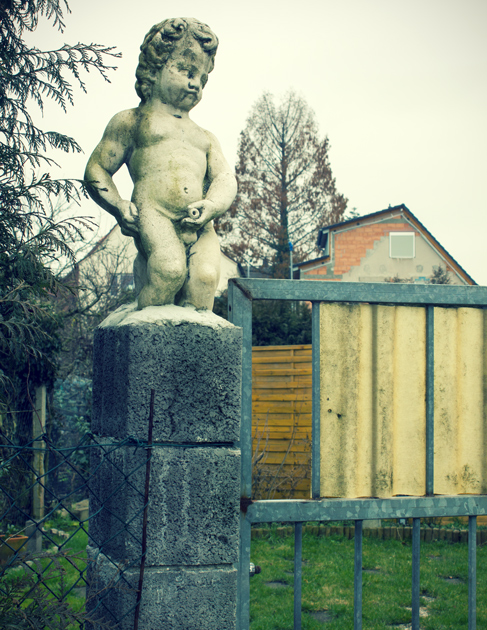 Un classico e irrispettoso puttino immerso in un contesto di "architetture" moderne...