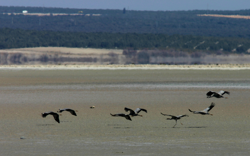 gru in migrazione andalucia, atetrraggio nella laguna di Fuente de Pedra andalucia