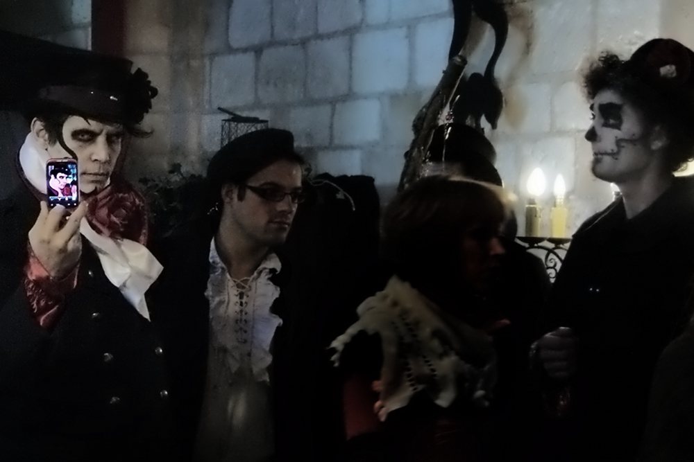 La manifestazione si è svolta in una chiesa sconsacrata illuminata a candele e lumicini, quindi la qualità dell'immagine è stata sacrificata senza pietà. Questa scena però mi ha molto divertita, e secondo me dà un'idea dell'atmosfera surreale che regnava.