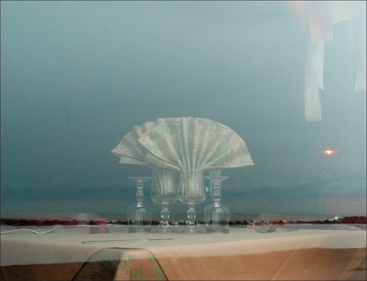 Cromaticamente gradevole e delicata, ben composta ed il gioco di riflesso e trasparenza intrattiene l'osservatore. L'avrei forse preferita senza il riflesso del sole sulla destra, così da lasciare un incontrastato ruolo di primo piano alla bella composizione, con quei vetri da natura morta dipinta, al centro del tavolo.