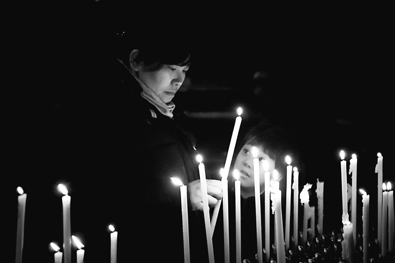 Un po' larga a sx, ma mi piace lo sguardo del bambino tra le candele, come incuriosito dalla serietà della madre.