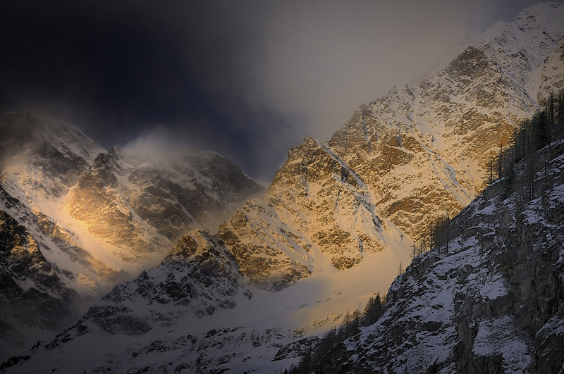 Sì.. riprendo le parole che altri hanno perfettamente usato, più in su: bella e difficile. Una incredibile cascata di luci dorate, che appena squarciano la densità oscura di questa visione in quota e scivolano fra neve e roccia.