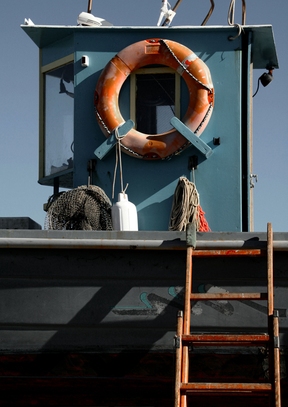 sotto c'era un filo di luce che faceva capire palesemente che la barca si trovava su cavalletti...ho voluto tagliare per lasciare che la scala se la intendesse ancor di più con il salvagente.