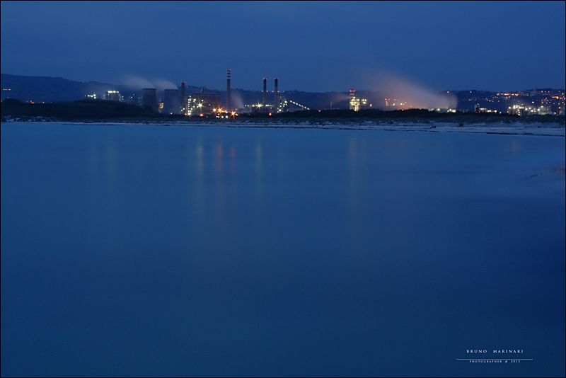 Un tratto del litorale che conosco bene ...il profilo della Solvay sullo sfondo mi piace molto di notte, quando tutte le luci accese della struttura industriale riportano alla mente certe scene del film Metropolis...bella foto  |