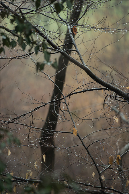 Come scritto da Luigi, le tonalità in ogni singolo scatto aiutano, assieme all'apertura focale, a distinguere ed a leggere i diversi elementi in gioco....dalle goccioline protagoniste all'intreccio di rami senza escludere lo sfondo....