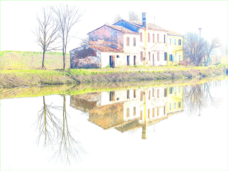 Un effetto lieve di acquerello che ha una sua gradevolezza. Bello l'effetto del fremito dell'acqua sul riflesso degli alberi a sinistra. È probabile che, come dice webmin, in una eventuale stampa possa emergere più di un problema.