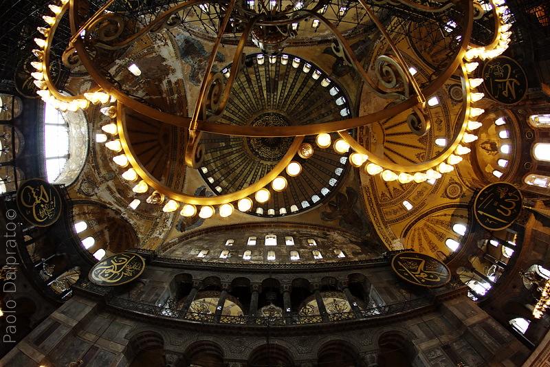 Tra le altre foto della Basilica di Santa Sofia ad Istabul presenti in galleria, quella che preferisco è di certo questa. L'incrocio tra i cerchi tracciati dai lampadari e quelli delle cupole sembra disegnare gli ingranaggi di un gigantesco orologio, con un conseguente impatto visivo notevole. _________________ "...una serie di piccoli attimi..."