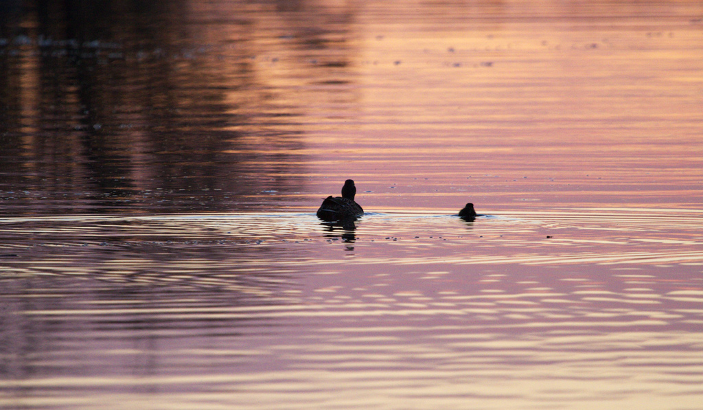 Vittorio hai ragione, 'sta foto è abbastanza debole. Mi era piaciuto quel riflesso di rame del lago, interrotto dalla sottile fascia d'argento dell'acqua smossa dall'anatra madre e dal suo paperotto... Questa è anche la ragione per cui ho mantenuto madre e figlia (chissà poi perché per me è femmina? forse perché anatra è femminile?) al centro, in modo da non tagliare l'increspatura (avevo provato altre possibilità naturalmente, ma per me erano invariabilmente peggiorative).