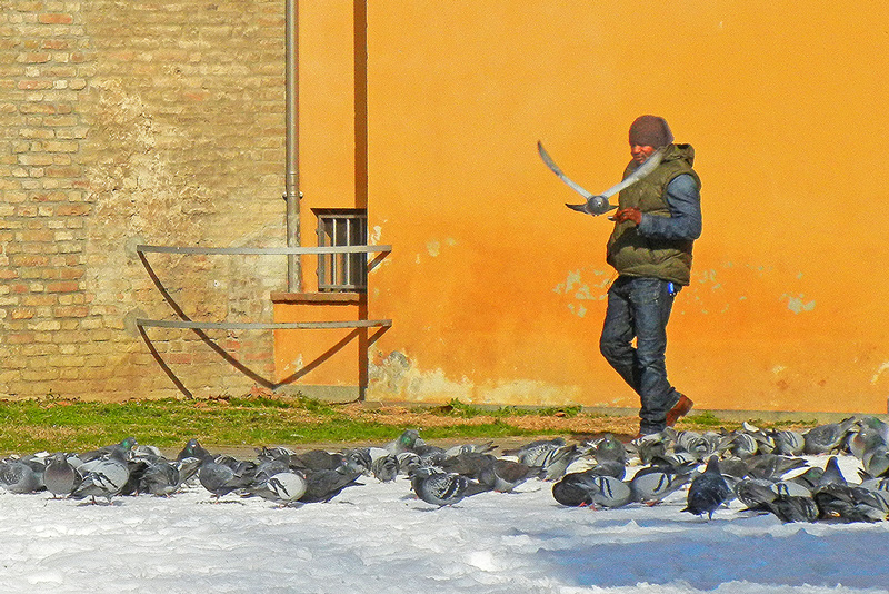 Bella foto, buono anche il titolo, sembra veramente che il piccione parta dopo ol Click.