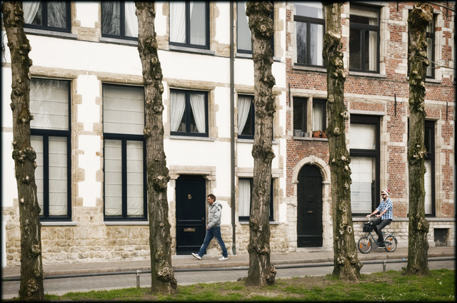 Oltre alla precisione ed al rigore compositivo praticamente "maniacale" , il che giá basterebbe a fare la foto, trovo particolarmente interessante il personaggio del ciclista, che ha un che di bizzarro. Inoltre, a giudicare dall'abbigliamento dei due personaggi, uno dei due si sbaglia (piumino vs. maniche di camicia, peró con cappellino.... )
