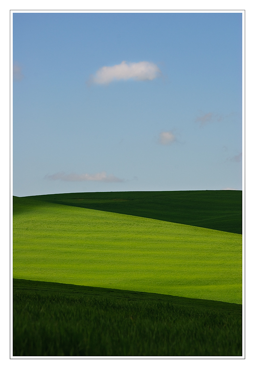 Adoro immagini come questa, quando è la luce a disegnare figure geometriche ed a sottolineare le linee del paesaggio. Il tutto è impreziosito da quei pochi "sbuffi" ordinati nel cielo.