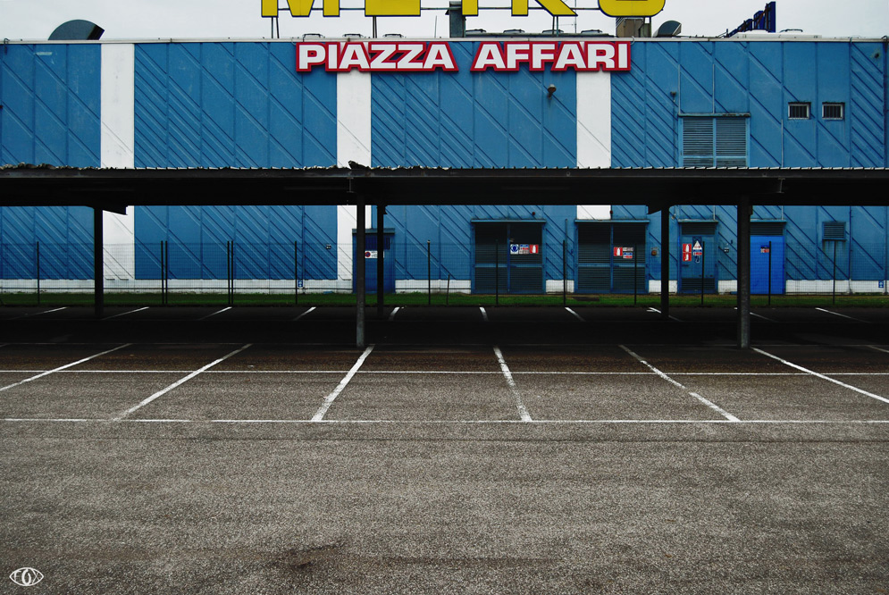 Interessante il contrasto scritta-parcheggio vuoto.