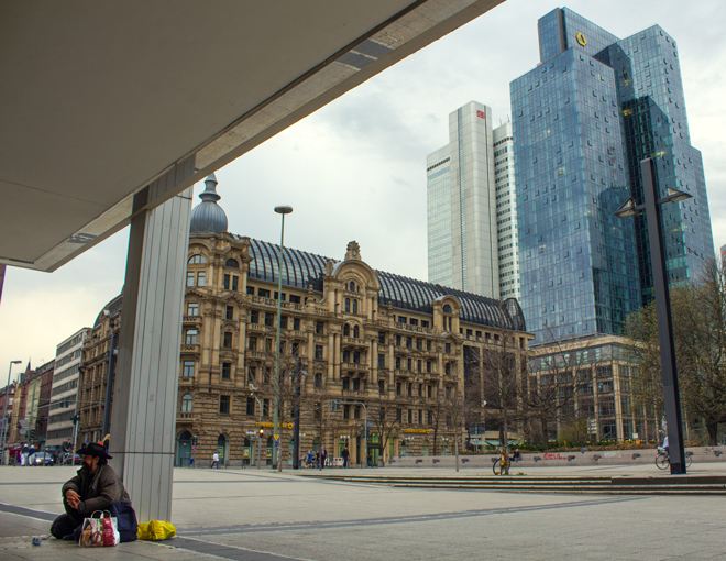 Sfarzo e povertà sulla stessa diagonale...ci può stare, malgrado la persona sia al limite dell'inquadratura e vi siano le linee cadenti da correggere...