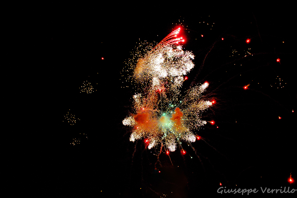 Ottima restituzione di questi fuochi: il tempo di esposizione li ha valorizzati il giusto. A mio avviso lo scatto soffre però un po' la posizione dei fuochi, non centrati ma nemmeno decentrati a sufficienza...puoi intervenire in post!