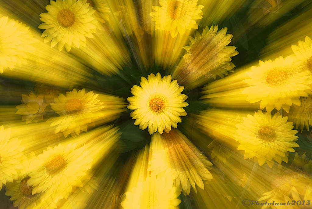 la predominanza del giallo e il mosso creano grande dinamicità verso l'esterno, con quel punto fermo al centro che cattura lo sguardo...