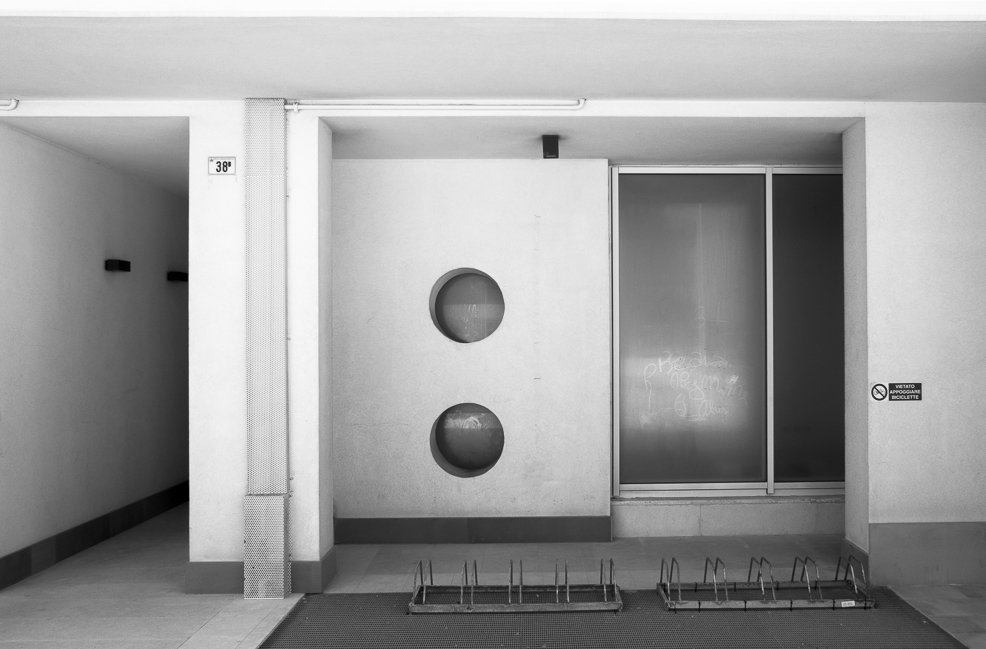 il colpo d'occhio non è male..trovo il b/n un po' spento..lo rafforzerei un po'..poi cercherei di mantenere sempre le linee dritte e simmetriche..vedi che non lo sono guarda il sotto porta bici..