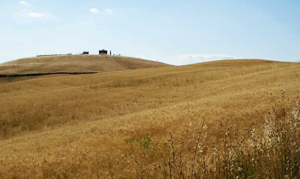 Splendide le spighe in basso a destra che creano una diagonale visiva con le nuvolette in alto a sinistra...