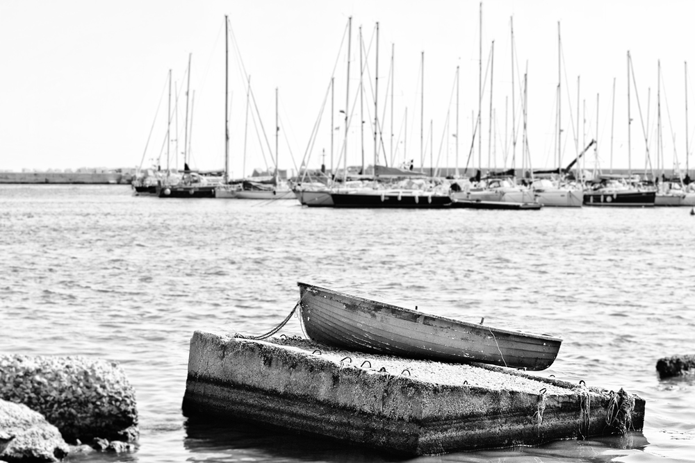 Molto carina, la piccola barchetta "spaesata" lontano dalle altre più grandi sullo sfondo, mi sembra un po' troppo sovraesposta forse...Bravo.