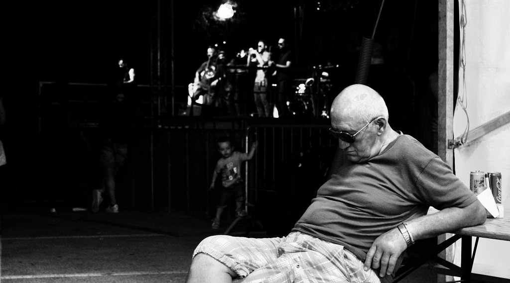bello il contrasto della staticità del 'nonno' e del movimento del 'nipote' che si code il concerto.