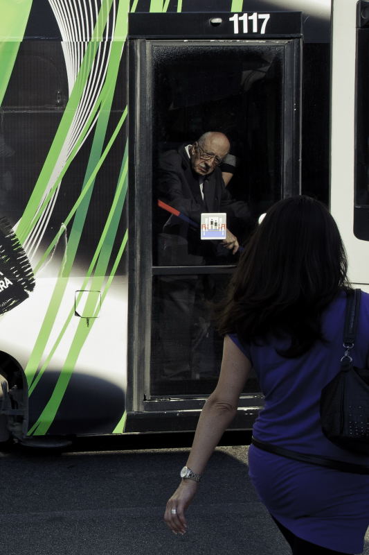 Il dinamismo della ragazza trova quasi disappunto ed invidia nell'attenzione del signore che seppure sul bus non si è fatto sfuggire la giovinezza che innanzi gli passa.