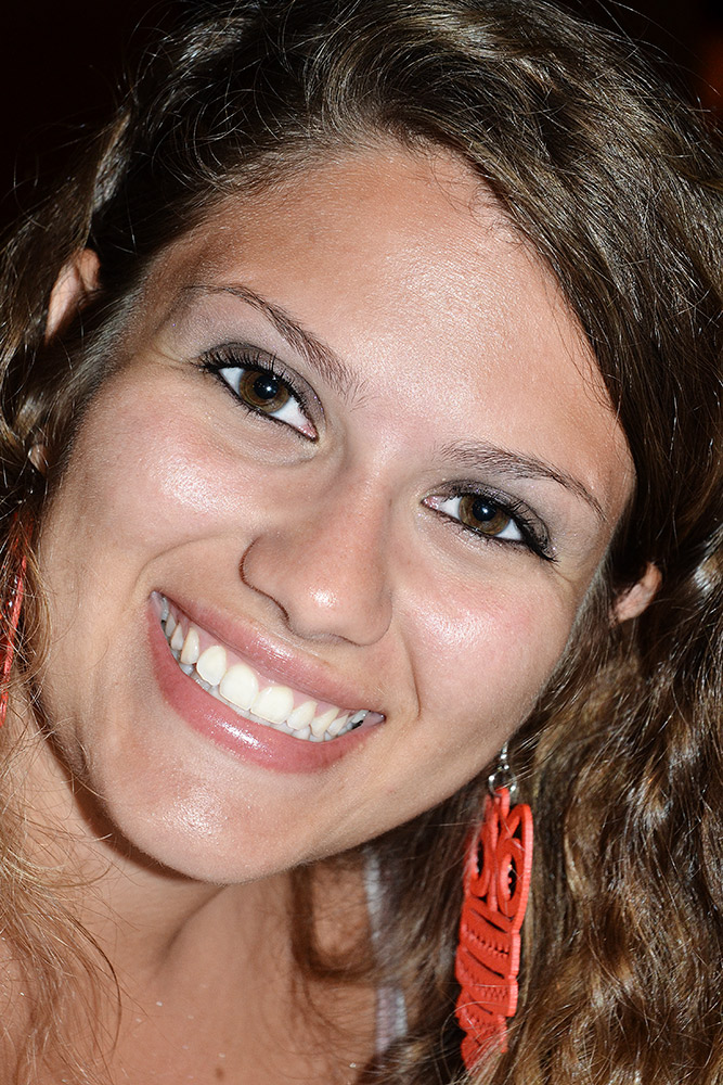 l'espressione è allegra e solare ed il taglio stretto è efficace per concentrare l'attenzione sugli occhi della ragazza. come detto sopra, l'uso della luce flash è troppo diretto ed aggressivo e vanifica il resto degli sforzi.