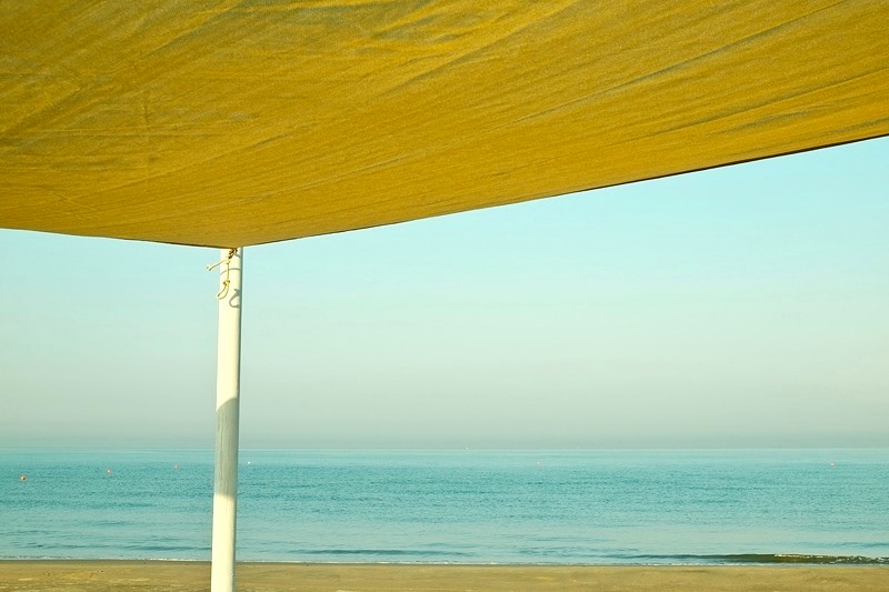 Si tratta di uno di quei tendoni per fare ombra sulla spiaggia, di solito capita di doverli fotografare dal basso verso l'alto e per questo la base è sempre minima...talvolta assente. A quel punto si preferisce sfruttare questa situazione, con buona luce e una messa a fuoco precisa si lavora sulla forma e sulla disposizione degli elementi.