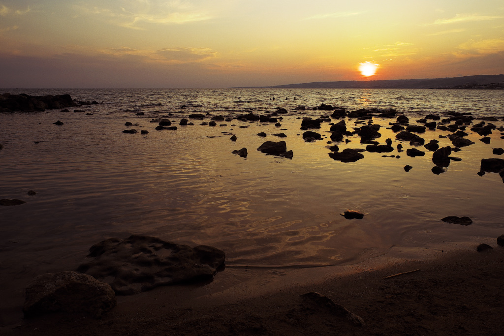 Non so se l'hai fatto ma dovresti provare, in occasioni simili, di scattare una foto ogni pochissimi minuti, finchè il sole scompare perchè la luce cambia, le rocce vengono illuminate differentemente ogni minuto che passa... poi scegli la migliore