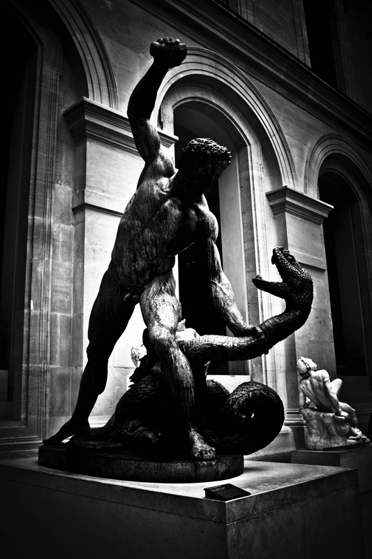A parte ciò una osservazione generale. Si vedono qui postate spesso foto di sculture e quasi mai si va oltre il riconoscimento della bravura non del fotografo ma, semmai... dello sculture. Però nel tuo caso emerge una buona capacità di rappresentare le qualità dell'opera attraverso il filtro di una forte personalità interpretativa, che emerge in molti aspetti: dalla scelta dell'angolo di presa all'inquadratura al trattamento. Per cui: bravo.